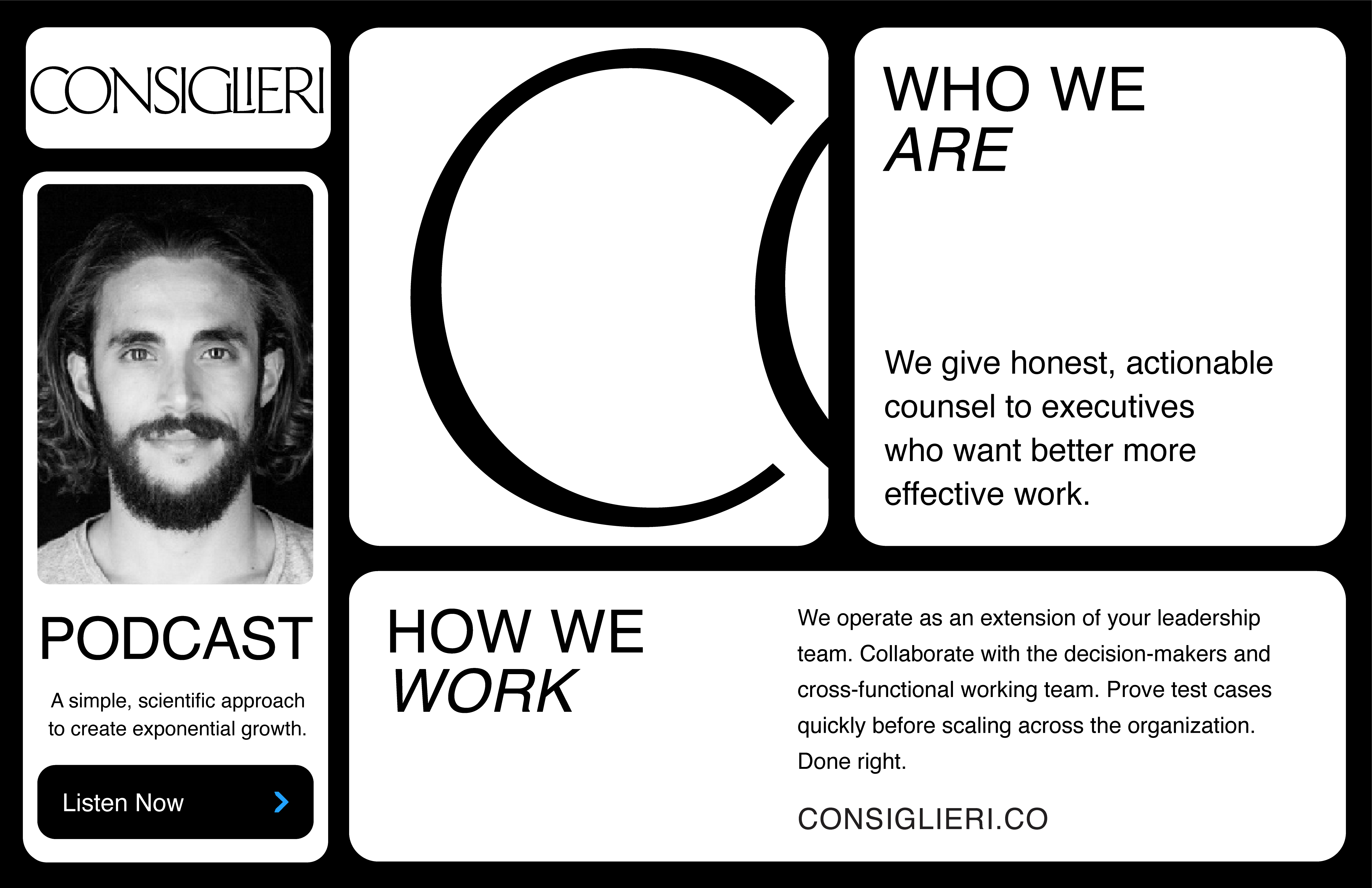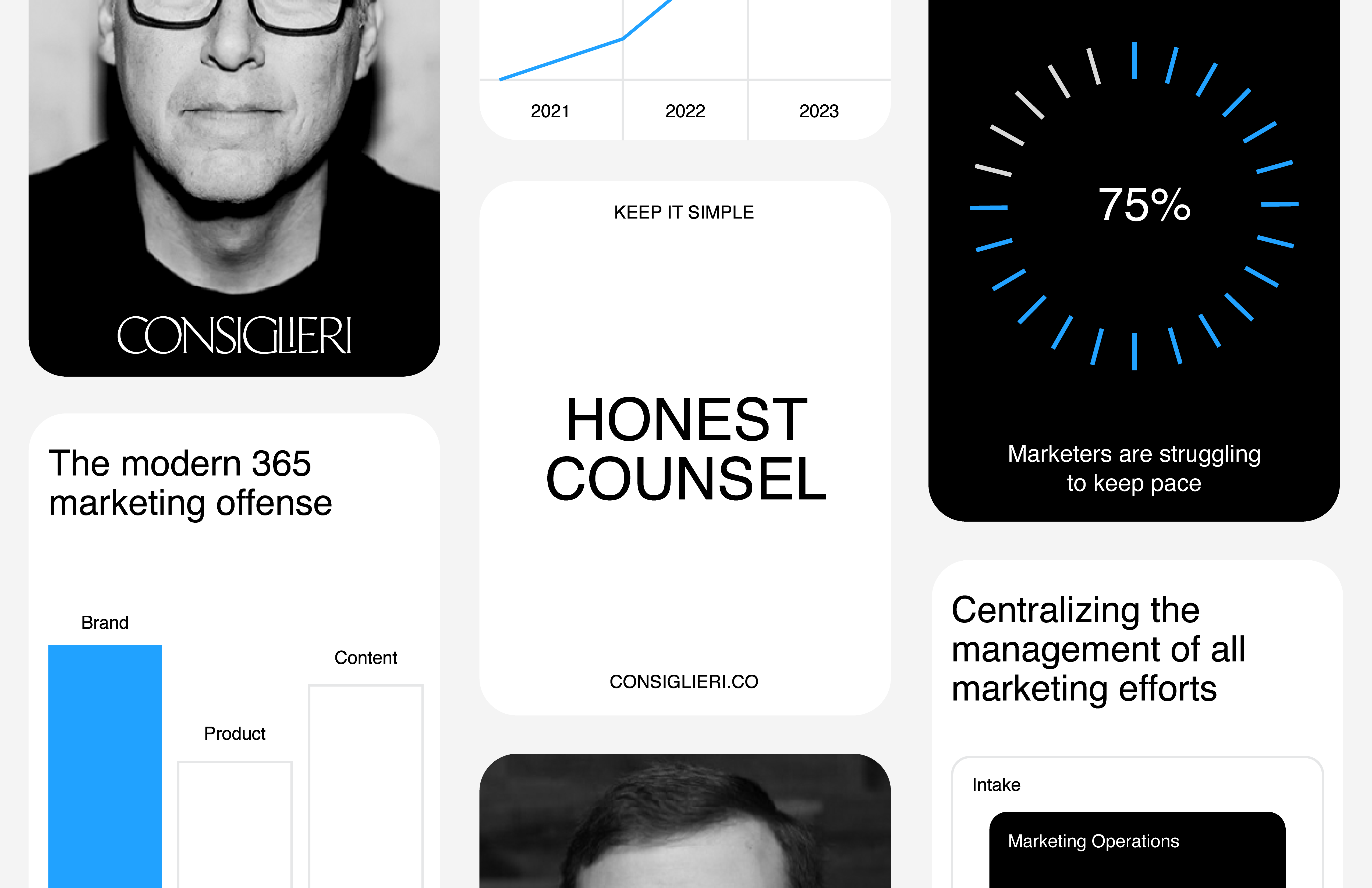 I worked with Consiglieri to evolve their brand, developing a universal design system that further deepens their commitment to a simplistic approach to marketing solutions.