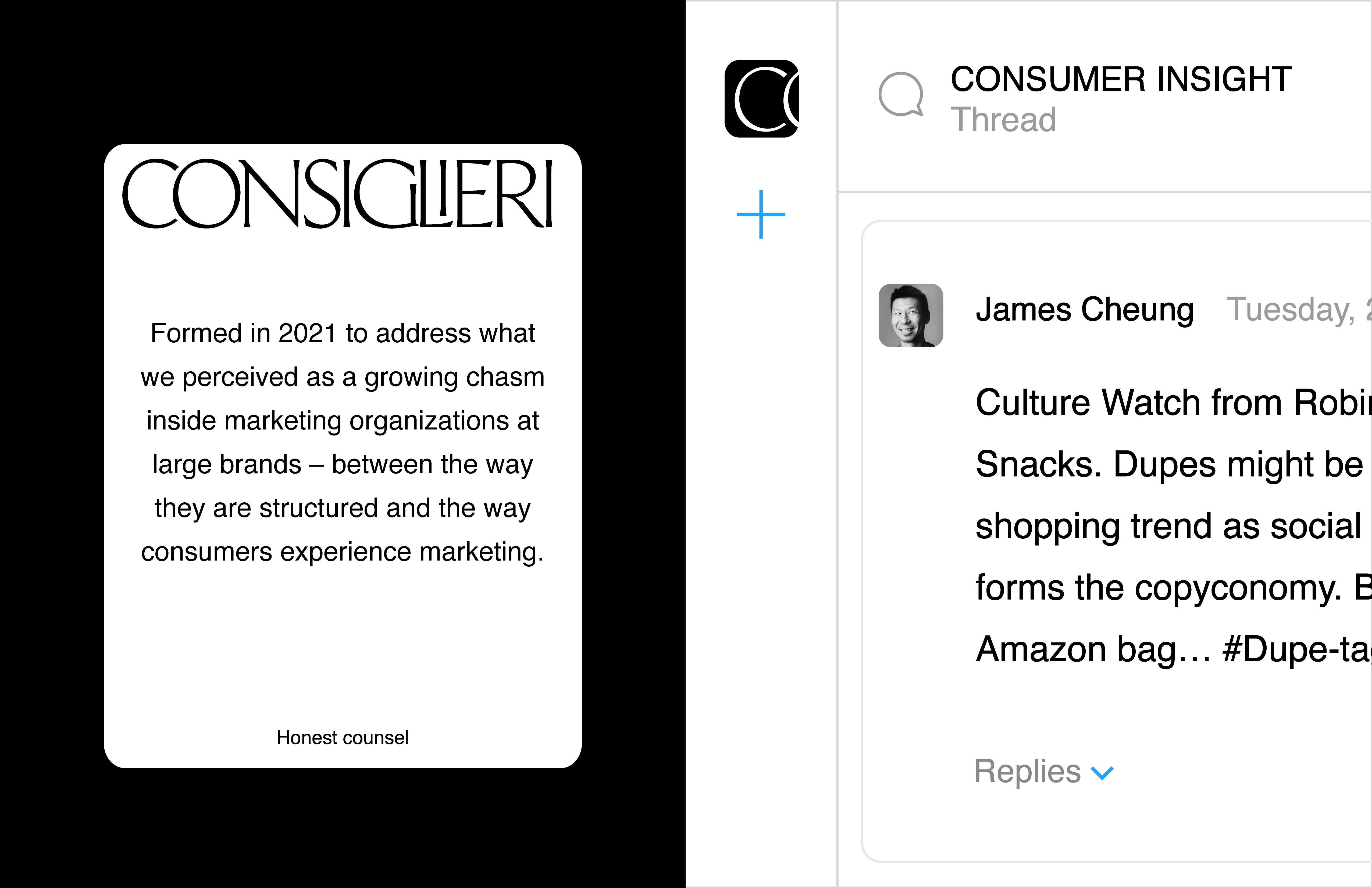 Consiglieri is a consulting firm designed to meet the modern demands of the ever changing consumer landscape. Their expertise lies in helping marketing executives find inventive ways to meet these needs and restructure their team to thrive.