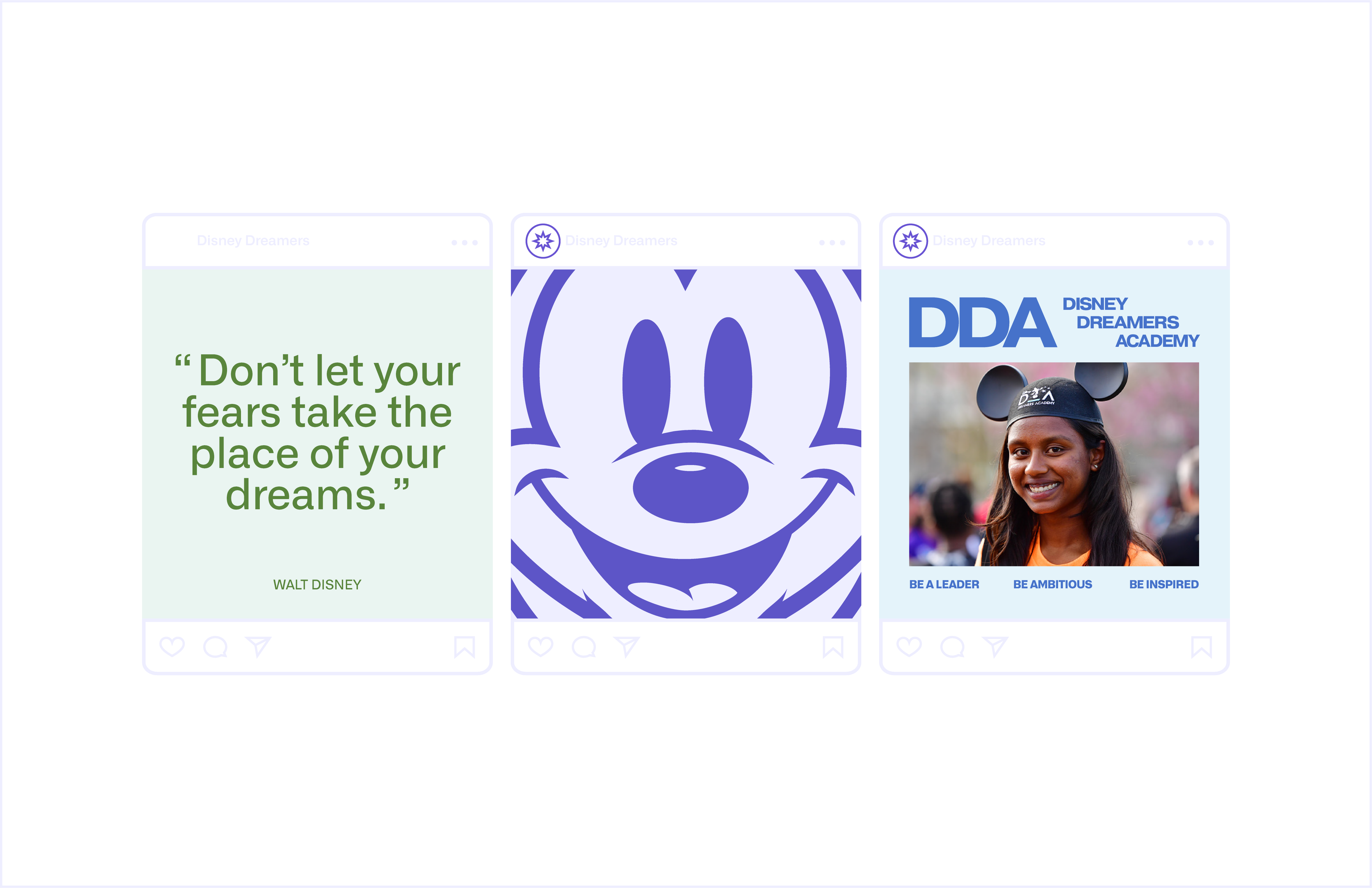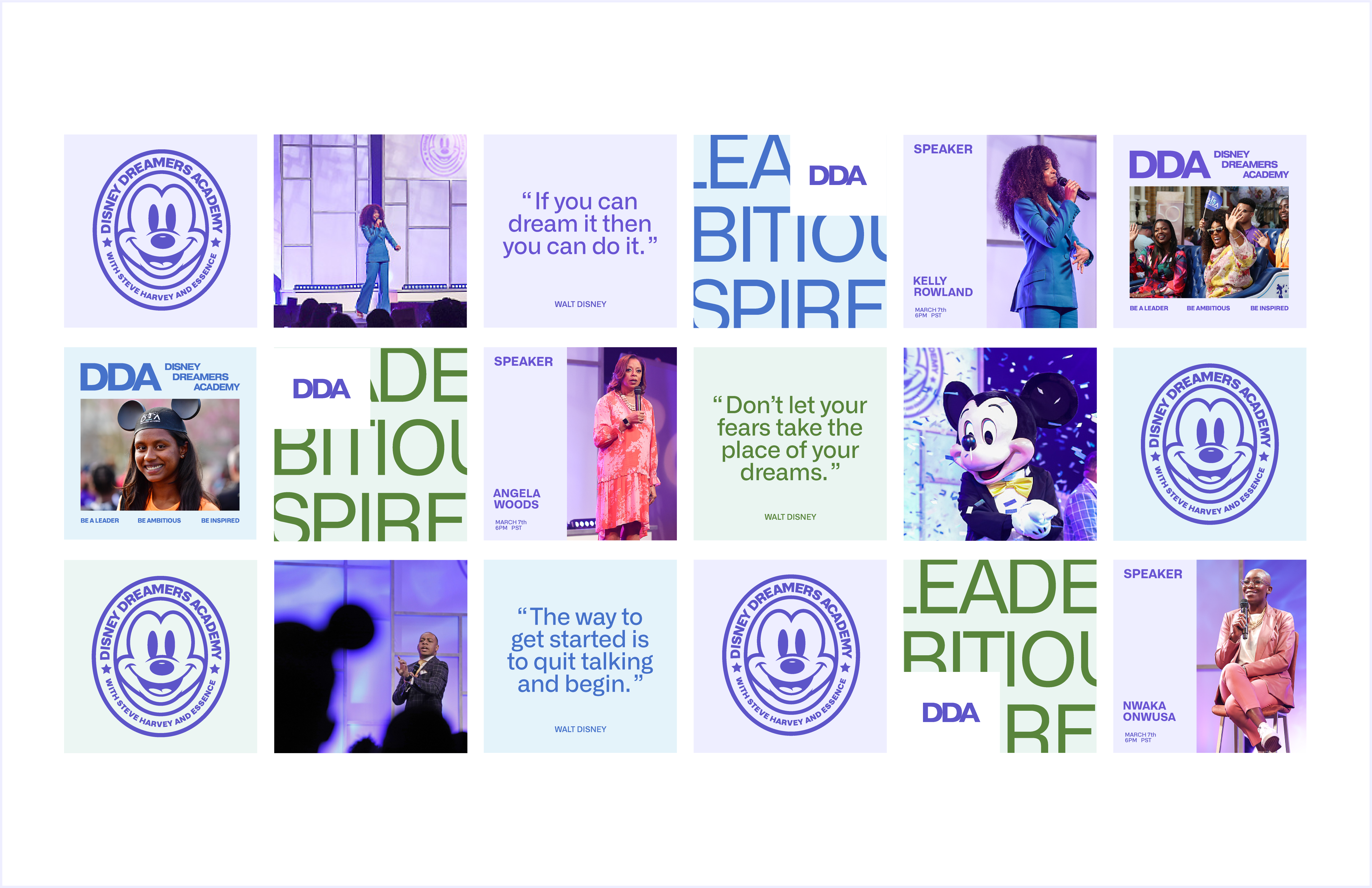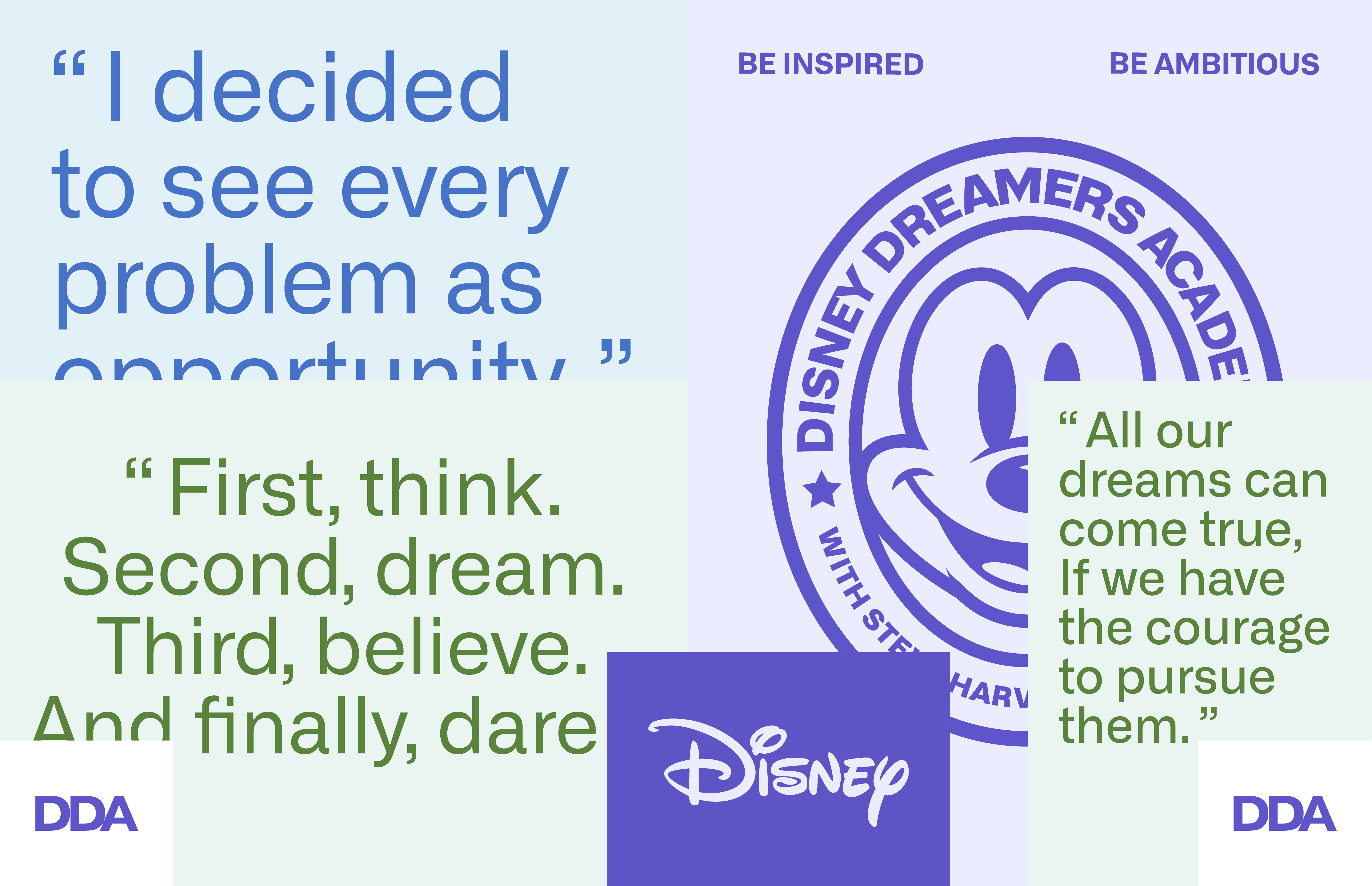 Each spring, the Disney Dreamers Academy brings together 100 outstanding high school students filled with ambition, enthusiasm, and hope for the future. This annual four-day event is designed to expand career awareness and create opportunities for minority students and those from underrepresented communities across the United States. I was invited to provide visual direction for a brand refresh.