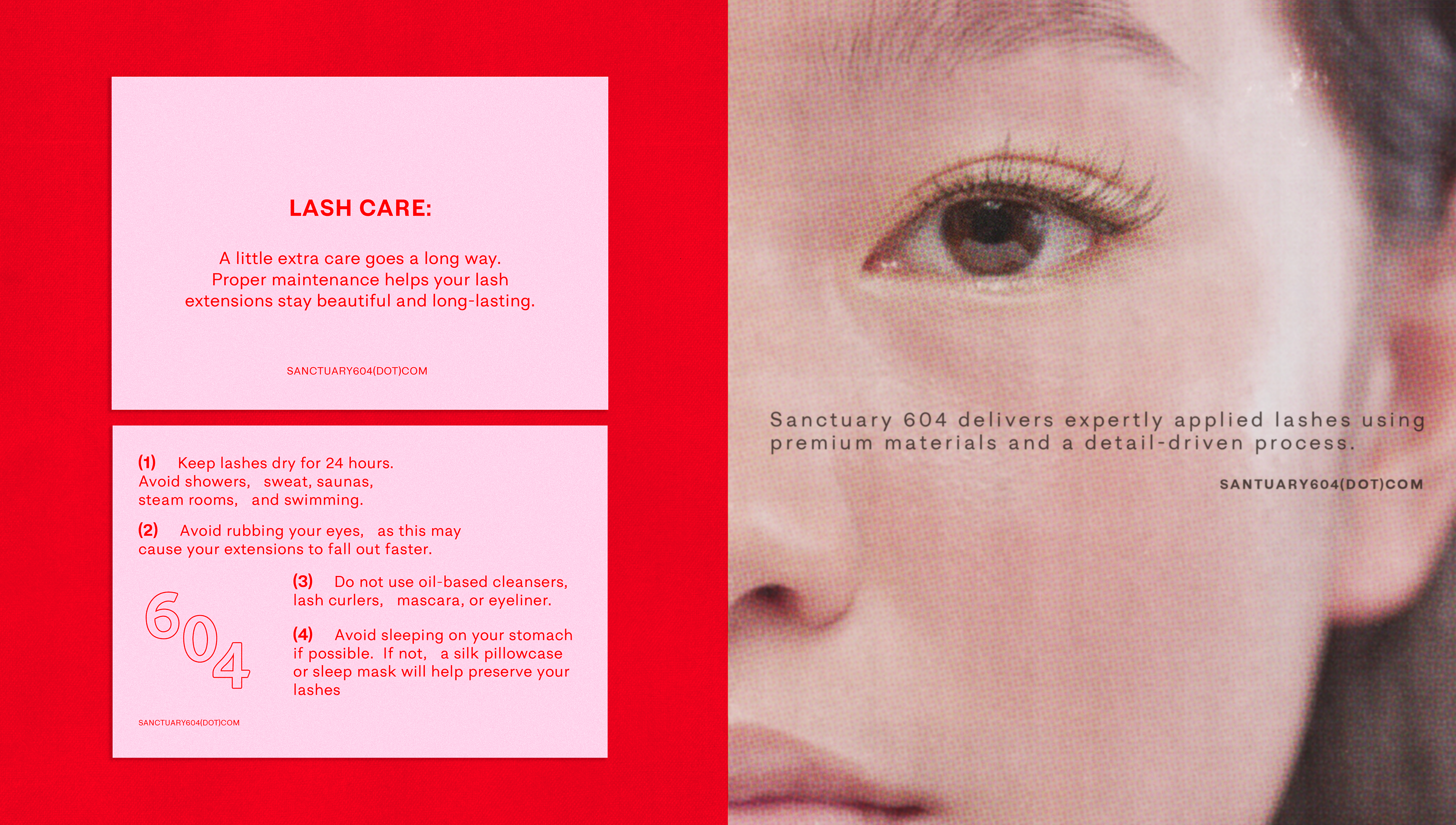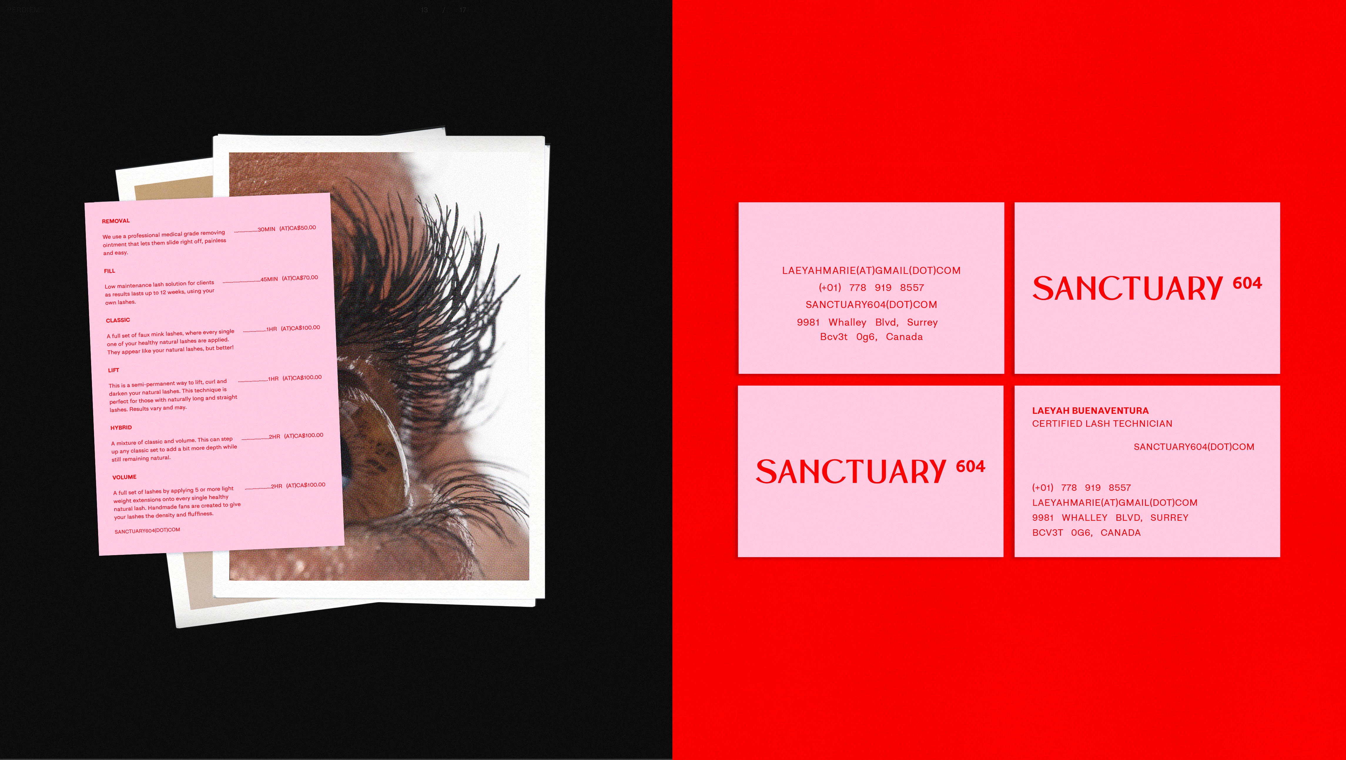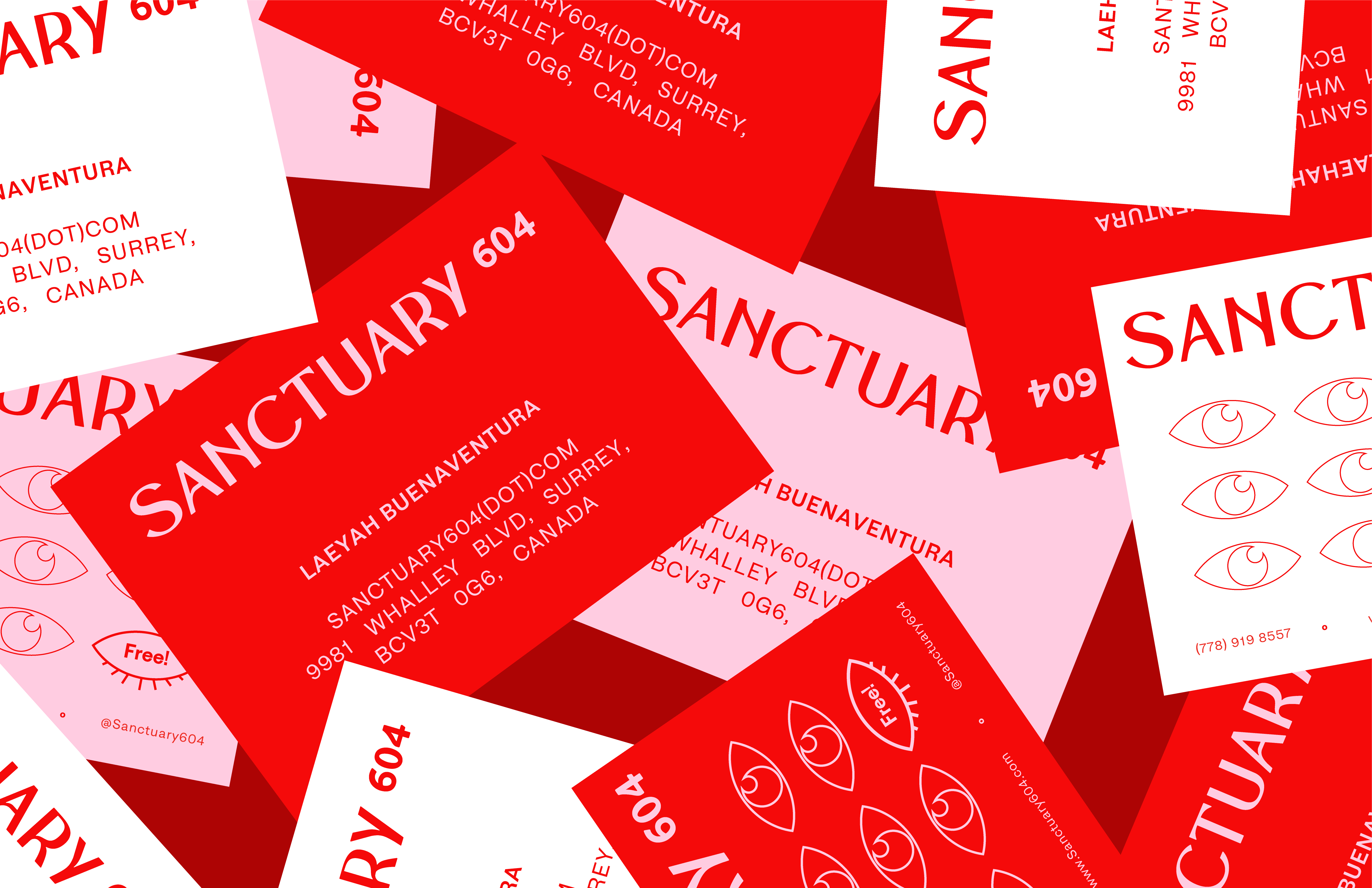 Welcome to Sanctuary 604, the ultimate destination for eyelash transformations in the heart of Surrey, BC. I had the pleasure of creating fully custom lettering for the logo and designing the supporting stationery materials.